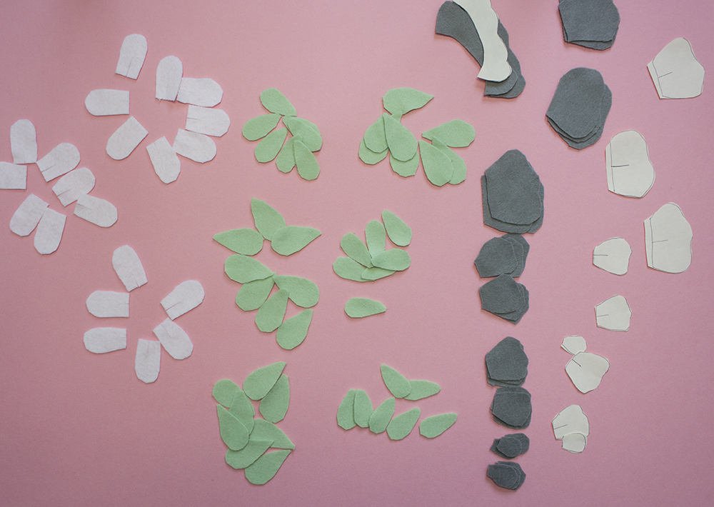 Using the template on my shop that’s free, cut out the shapes. Using those paper shapes you want to place them on the felt and cut out those shapes. Each flower will say how many pieces you need to cut out.